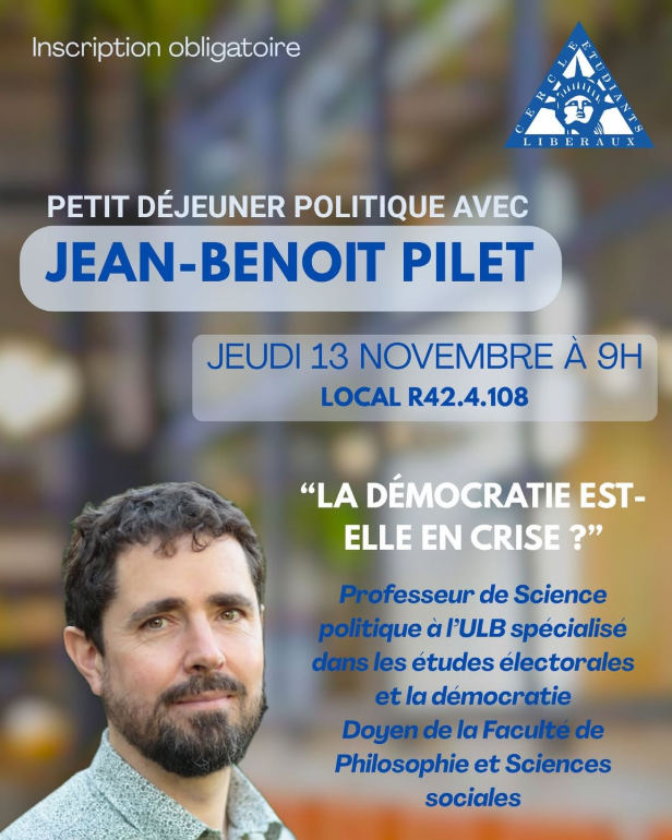 9:00 am - 11:00 am CEL ULB – Petit déjeuner politique avec Jean-Benoit Pilet novembre 13 @ 9:00 - 11:00 CEL ULB – Petit déjeuner politique avec Jean-Benoit Pilet